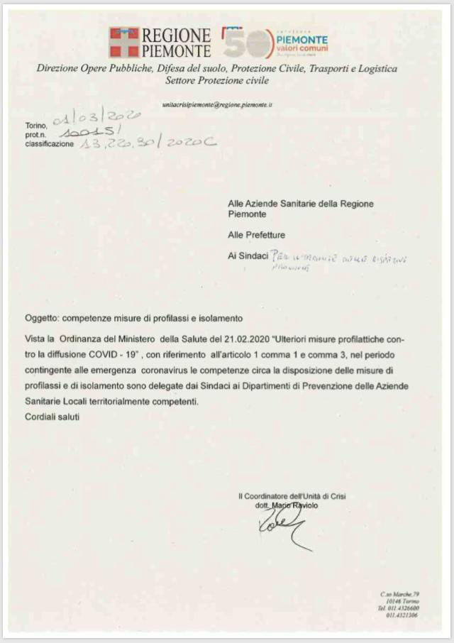 Il Ministero della Salute precisa che le competenze circa la disposizione delle misure di profilassi e di isolamento sono delegate dai Sindaci ai Dipartimenti di Prevenzione delle Aziende Sanitarie Locali territorialmente competenti.